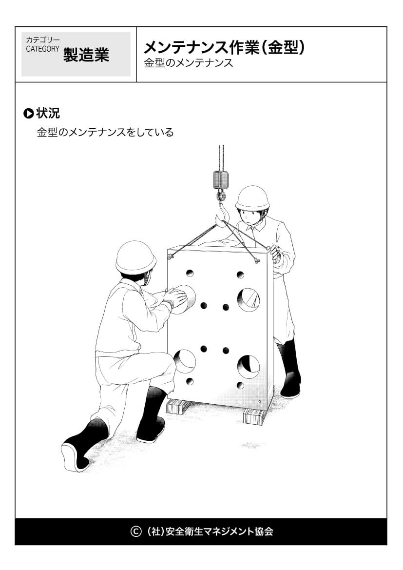 ホーム > 危険予知訓練(KYT)無料イラストシート集 > 製造業 危険予知活動 以下(一財)中小建設業特別教育協会へのリンク 危険予知訓練(KYT) 危険予知活動(KY)動画集 カテゴリー 林業 (1) 製造業 (56) 医療・看護 (60) 事務・一般 (59) 飲食 (23) 実験 (21) その他 (8) 運輸業 (16) 農業 (25) 水産・漁業 (18) メンテナンス作業(金型) 金型のメンテナンス //php if ( the_field('jyokyo') ) : ?> PDFダウンロード 状況 金型のメンテナンスをしている カテゴリー: 製造業 このページをシェアする Twitter Facebook LINE 講習会をお探しですか? 講習会一覧はこちら スケジュールページからお申込み