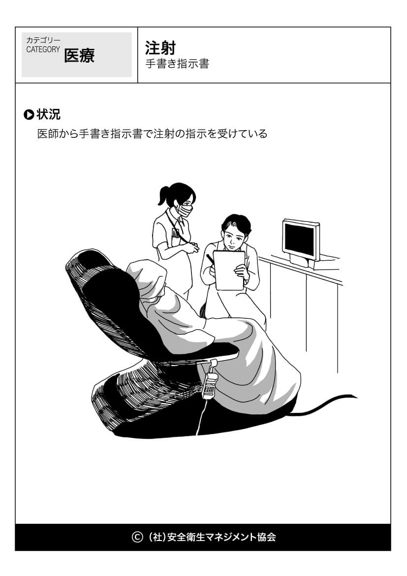 ホーム > 危険予知訓練(KYT)無料イラストシート集 > 医療・看護 危険予知活動 以下(一財)中小建設業特別教育協会へのリンク 危険予知訓練(KYT) 危険予知活動(KY)動画集 カテゴリー 林業 (1) 製造業 (56) 医療・看護 (60) 事務・一般 (59) 飲食 (23) 実験 (21) その他 (8) 運輸業 (16) 農業 (25) 水産・漁業 (18) 注射 – 手書き指示書 手書き指示書 //php if ( the_field('jyokyo') ) : ?> PDFダウンロード 状況 医師から手書き指示書で注射の指示を受けている カテゴリー: 医療・看護 このページをシェアする Twitter Facebook LINE 講習会をお探しですか? 講習会一覧はこちら スケジュールページからお申込み