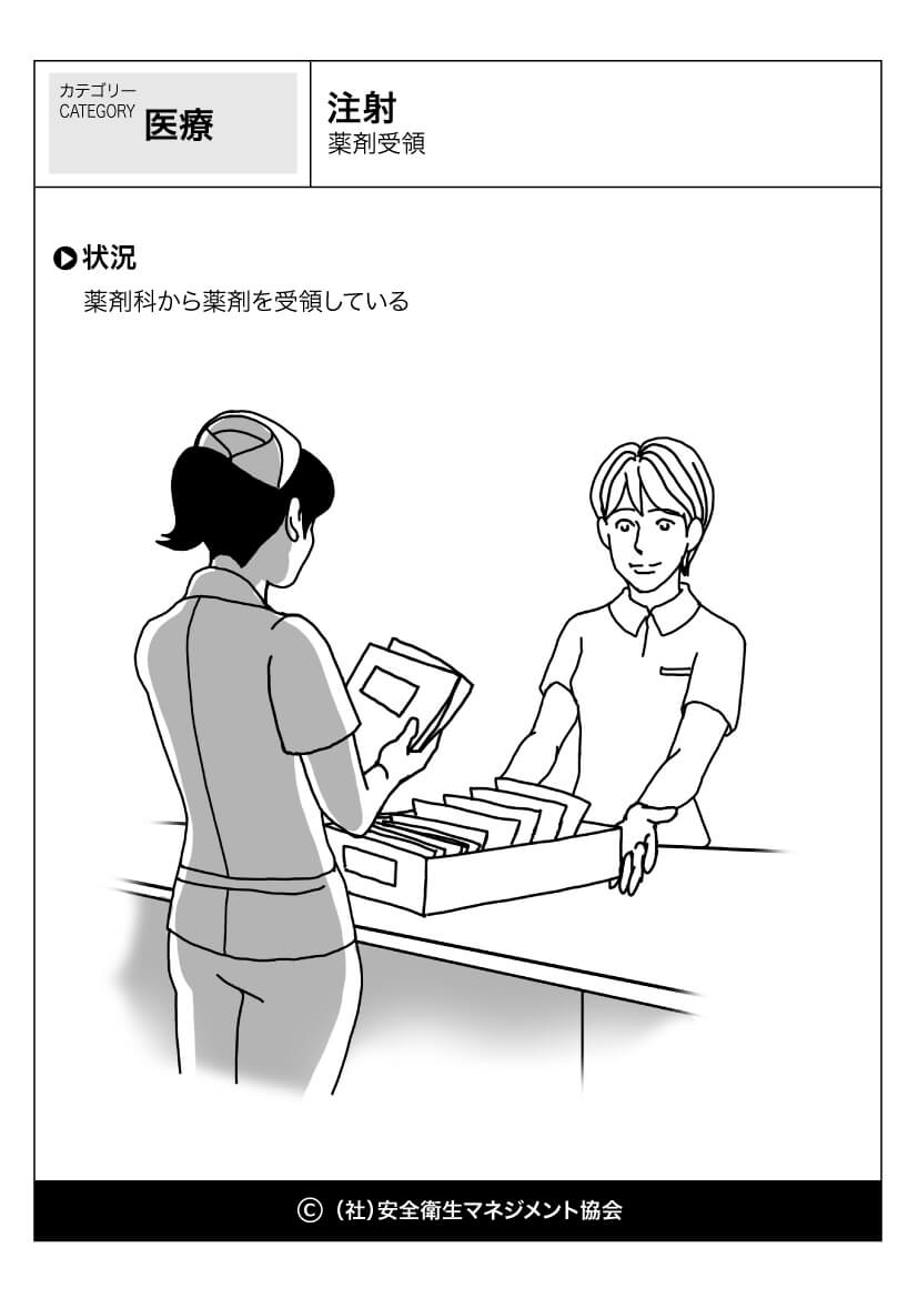 ホーム > 危険予知訓練(KYT)無料イラストシート集 > 医療・看護 危険予知活動 以下(一財)中小建設業特別教育協会へのリンク 危険予知訓練(KYT) 危険予知活動(KY)動画集 カテゴリー 林業 (1) 製造業 (56) 医療・看護 (60) 事務・一般 (59) 飲食 (23) 実験 (21) その他 (8) 運輸業 (16) 農業 (25) 水産・漁業 (18) 注射-薬剤受領 薬剤受領 //php if ( the_field('jyokyo') ) : ?> PDFダウンロード 状況 薬剤科から薬剤を受領している カテゴリー: 医療・看護 このページをシェアする Twitter Facebook LINE 講習会をお探しですか? 講習会一覧はこちら スケジュールページからお申込み