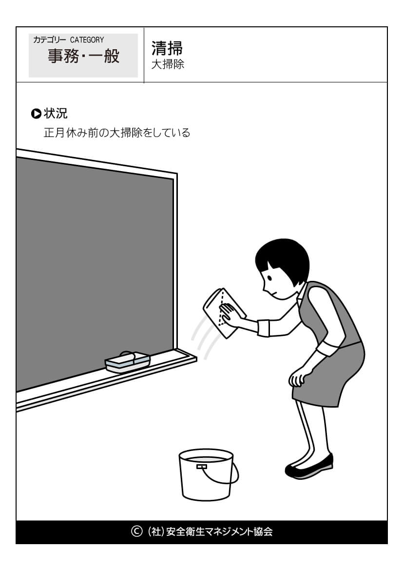 ホーム > 危険予知訓練(KYT)無料イラストシート集 > 事務・一般 危険予知活動 以下(一財)中小建設業特別教育協会へのリンク 危険予知訓練(KYT) 危険予知活動(KY)動画集 カテゴリー 林業 (1) 製造業 (56) 医療・看護 (60) 事務・一般 (59) 飲食 (23) 実験 (21) その他 (8) 運輸業 (16) 農業 (25) 水産・漁業 (18) 清掃 -大掃除 大掃除 //php if ( the_field('jyokyo') ) : ?> PDFダウンロード 状況 正月休み前の大掃除をしている カテゴリー: 事務・一般 このページをシェアする Twitter Facebook LINE 講習会をお探しですか? 講習会一覧はこちら スケジュールページからお申込み