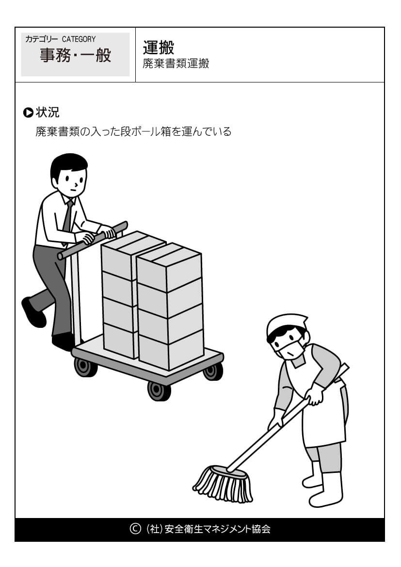ホーム > 危険予知訓練(KYT)無料イラストシート集 > 事務・一般 危険予知活動 以下(一財)中小建設業特別教育協会へのリンク 危険予知訓練(KYT) 危険予知活動(KY)動画集 カテゴリー 林業 (1) 製造業 (56) 医療・看護 (60) 事務・一般 (59) 飲食 (23) 実験 (21) その他 (8) 運輸業 (16) 農業 (25) 水産・漁業 (18) 運搬 -廃棄書類運搬 廃棄書類運搬 //php if ( the_field('jyokyo') ) : ?> PDFダウンロード 状況 廃棄書類の入った段ボール箱を運んでいる カテゴリー: 事務・一般 このページをシェアする Twitter Facebook LINE 講習会をお探しですか? 講習会一覧はこちら スケジュールページからお申込み