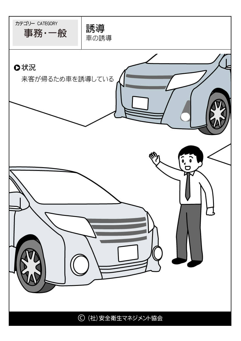 ホーム > 危険予知訓練(KYT)無料イラストシート集 > 事務・一般 危険予知活動 以下(一財)中小建設業特別教育協会へのリンク 危険予知訓練(KYT) 危険予知活動(KY)動画集 カテゴリー 林業 (1) 製造業 (56) 医療・看護 (60) 事務・一般 (59) 飲食 (23) 実験 (21) その他 (8) 運輸業 (16) 農業 (25) 水産・漁業 (18) 誘導 -車の誘導 車の誘導 //php if ( the_field('jyokyo') ) : ?> PDFダウンロード 状況 来客が帰るため車を誘導している カテゴリー: 事務・一般 このページをシェアする Twitter Facebook LINE 講習会をお探しですか? 講習会一覧はこちら スケジュールページからお申込み