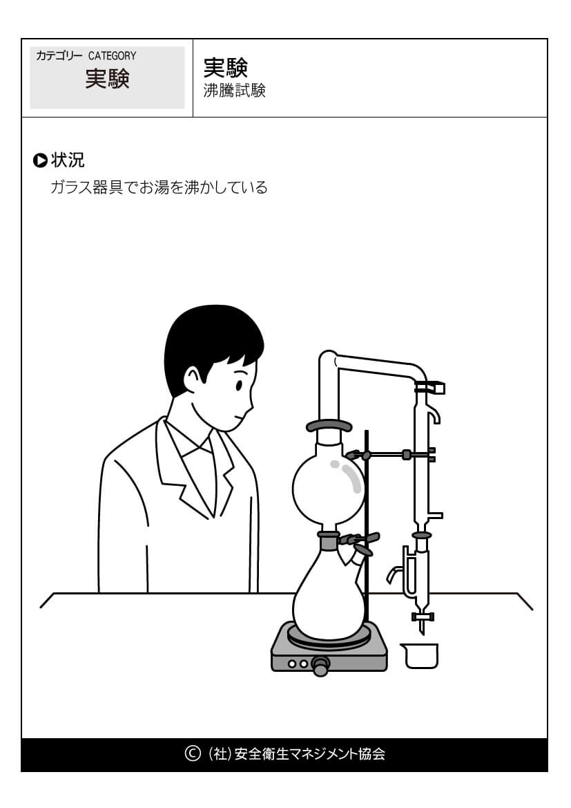 ホーム > 危険予知訓練(KYT)無料イラストシート集 > 実験 危険予知活動 以下(一財)中小建設業特別教育協会へのリンク 危険予知訓練(KYT) 危険予知活動(KY)動画集 カテゴリー 林業 (1) 製造業 (56) 医療・看護 (60) 事務・一般 (59) 飲食 (23) 実験 (21) その他 (8) 運輸業 (16) 農業 (25) 水産・漁業 (18) 実験-沸騰試験 沸騰試験 //php if ( the_field('jyokyo') ) : ?> PDFダウンロード 状況 ガラス器具でお湯を沸かしている カテゴリー: 実験 このページをシェアする Twitter Facebook LINE 講習会をお探しですか? 講習会一覧はこちら スケジュールページからお申込み