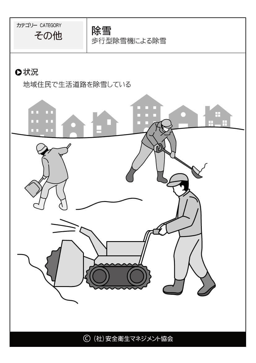 ホーム > 危険予知訓練(KYT)無料イラストシート集 > その他 危険予知活動 以下(一財)中小建設業特別教育協会へのリンク 危険予知訓練(KYT) 危険予知活動(KY)動画集 カテゴリー 林業 (1) 製造業 (56) 医療・看護 (60) 事務・一般 (59) 飲食 (23) 実験 (21) その他 (8) 運輸業 (16) 農業 (25) 水産・漁業 (18) 除雪-歩行型除雪機による除雪(生活道路) 歩行型除雪機による除雪(生活道路) //php if ( the_field('jyokyo') ) : ?> PDFダウンロード 状況 地域住民で生活道路を除雪している カテゴリー: その他 このページをシェアする Twitter Facebook LINE 講習会をお探しですか? 講習会一覧はこちら スケジュールページからお申込み