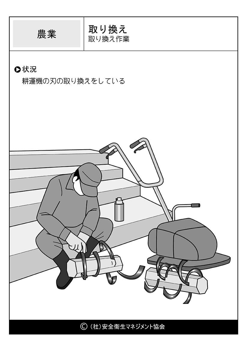 ホーム > 危険予知訓練(KYT)無料イラストシート集 > 農業 危険予知活動 以下(一財)中小建設業特別教育協会へのリンク 危険予知訓練(KYT) 危険予知活動(KY)動画集 カテゴリー 林業 (1) 製造業 (56) 医療・看護 (60) 事務・一般 (59) 飲食 (23) 実験 (21) その他 (8) 運輸業 (16) 農業 (25) 水産・漁業 (18) 取り換え-耕運機の刃の取り替え 耕運機の刃の取り替え //php if ( the_field('jyokyo') ) : ?> PDFダウンロード 状況 耕運機の刃の取り換えをしている カテゴリー: 農業 このページをシェアする Twitter Facebook LINE 講習会をお探しですか? 講習会一覧はこちら スケジュールページからお申込み