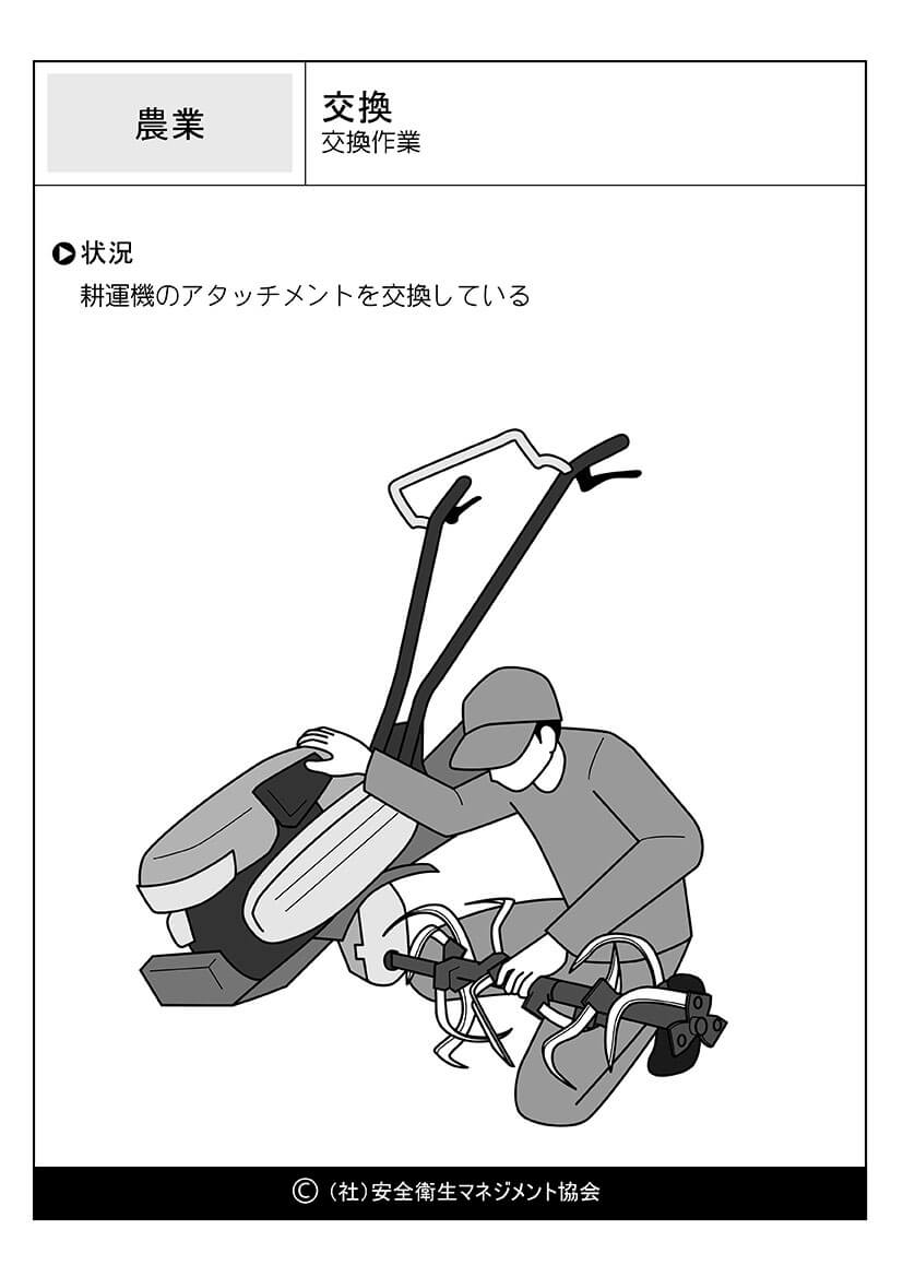 ホーム > 危険予知訓練(KYT)無料イラストシート集 > 農業 危険予知活動 以下(一財)中小建設業特別教育協会へのリンク 危険予知訓練(KYT) 危険予知活動(KY)動画集 カテゴリー 林業 (1) 製造業 (56) 医療・看護 (60) 事務・一般 (59) 飲食 (23) 実験 (21) その他 (8) 運輸業 (16) 農業 (25) 水産・漁業 (18) 交換-耕運機のアタッチメント交換 耕運機のアタッチメント交換 //php if ( the_field('jyokyo') ) : ?> PDFダウンロード 状況 耕運機のアタッチメントを交換している カテゴリー: 農業 このページをシェアする Twitter Facebook LINE 講習会をお探しですか? 講習会一覧はこちら スケジュールページからお申込み