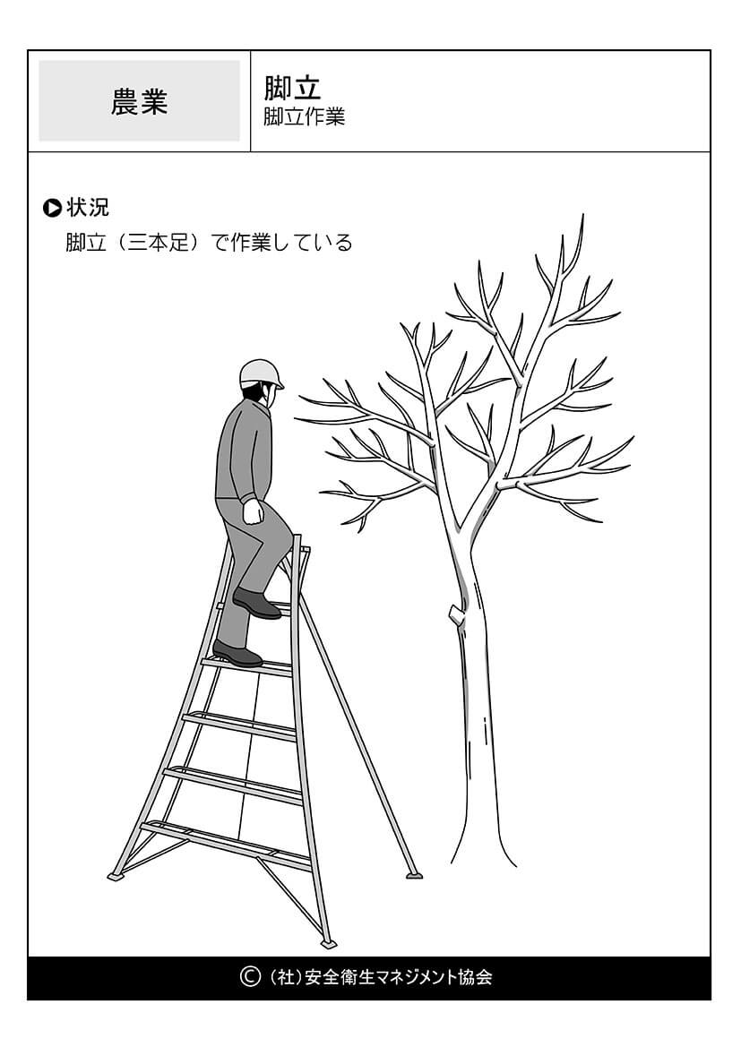 ホーム > 危険予知訓練(KYT)無料イラストシート集 > 農業 危険予知活動 以下(一財)中小建設業特別教育協会へのリンク 危険予知訓練(KYT) 危険予知活動(KY)動画集 カテゴリー 林業 (1) 製造業 (56) 医療・看護 (60) 事務・一般 (59) 飲食 (23) 実験 (21) その他 (8) 運輸業 (16) 農業 (25) 水産・漁業 (18) 脚立-脚立作業 脚立作業 //php if ( the_field('jyokyo') ) : ?> PDFダウンロード 状況 脚立(三本足)で作業している カテゴリー: 農業 このページをシェアする Twitter Facebook LINE 講習会をお探しですか? 講習会一覧はこちら スケジュールページからお申込み