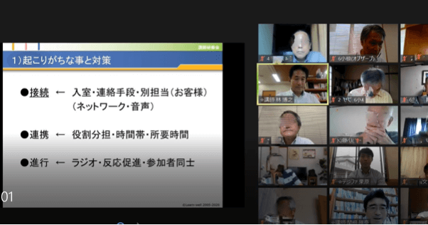 林講師より、経験を踏まえたオンライン研修特有の注意事項について説明があり、それに対しての質問も活発に行われました。