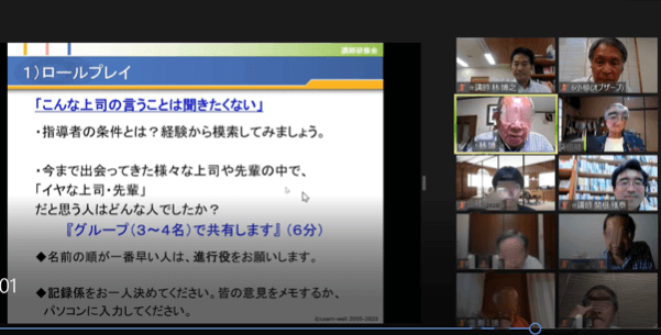 今回は実際にオンラインによる講習の講師を依頼されることを想定し、注意事項やノウハウについて学びました。