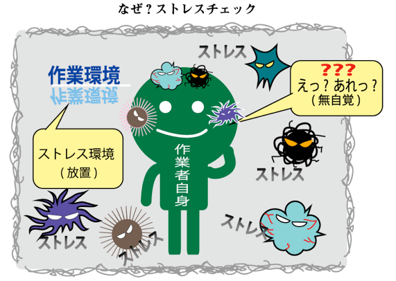 これらの対策として1.については各種のカウンセリングやセルフケアの方法が開発されていますが、そのためにはまず各労働者が自分自身のストレスの程度に気づく必要があります。