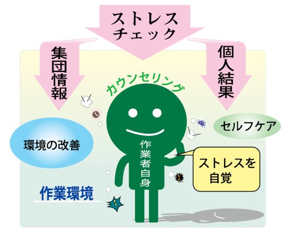 また、2.についても職場集団全体のストレスチェックのデータを通して、職場環境に関する問題点の把握やそれに対する有効な対策の実施が期待出来ます。 ストレスチェックはこれらを実行するための手段と言えます。