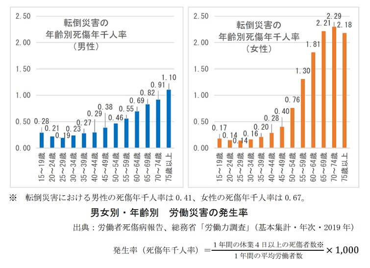 ・女性就業者の割合が高い(転倒災害に於いては女性の割合が高い)