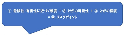 2.リスクの見積もりを、「作業頻度」、「設備的要因による発生の可能性」、「人的要因による発生の可能性」、「けがの程度」の計4つの要素により、加算方式で行った例。
