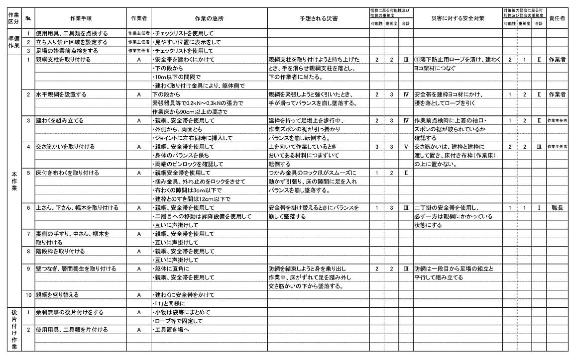 ■また、以下の例のように各種の作業別リスクアセスメント資料も作成されています。