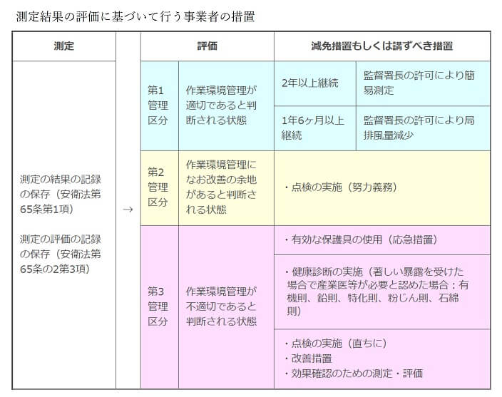 事業者は、空気中の粉じん濃度の測定を行ったときは、その都度、速やかに、次により当該測定の結果の評価を行うこと。