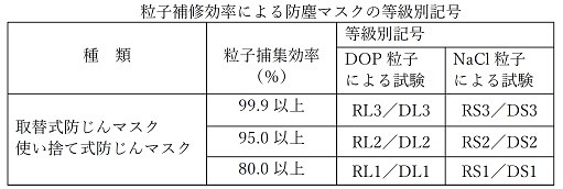 厚労省では防じんマスクの各種規格について定めていますが、ここではそのうち粒子の捕集効率について掲載します。