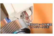 ④プレッシャデマンド弁のインジケータが赤色になっていることを確認します。