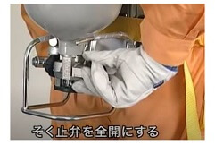 ⑤そく止弁のハンドルをゆっくり開き、全開にします。ハンドルが止まったら半回転戻します。