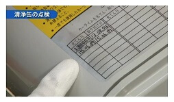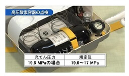 点検は、酸素ボンベの圧力が最高充てん圧力の80%以上あること及び清浄剤の有効期限の確認などを行います。また、清浄缶に貼付されている交換記録表の「交換日」から6力月以上経過したものは、清浄能力が低下しているおそれがあるので、使用できません。
