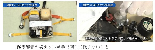 二叉管にキャップが付いていること(付いていないと二酸化炭素吸収剤が劣化して、二酸化炭素中毒のおそれがある)