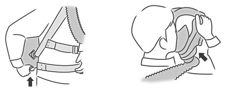⑤胸バンド、腰バンドを接続し、長さを調整します。