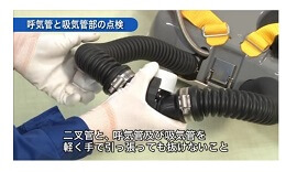 呼気管と吸気管に変形、粘着、亀裂がないこと