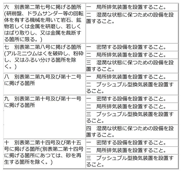 【別表第一】粉じん作業